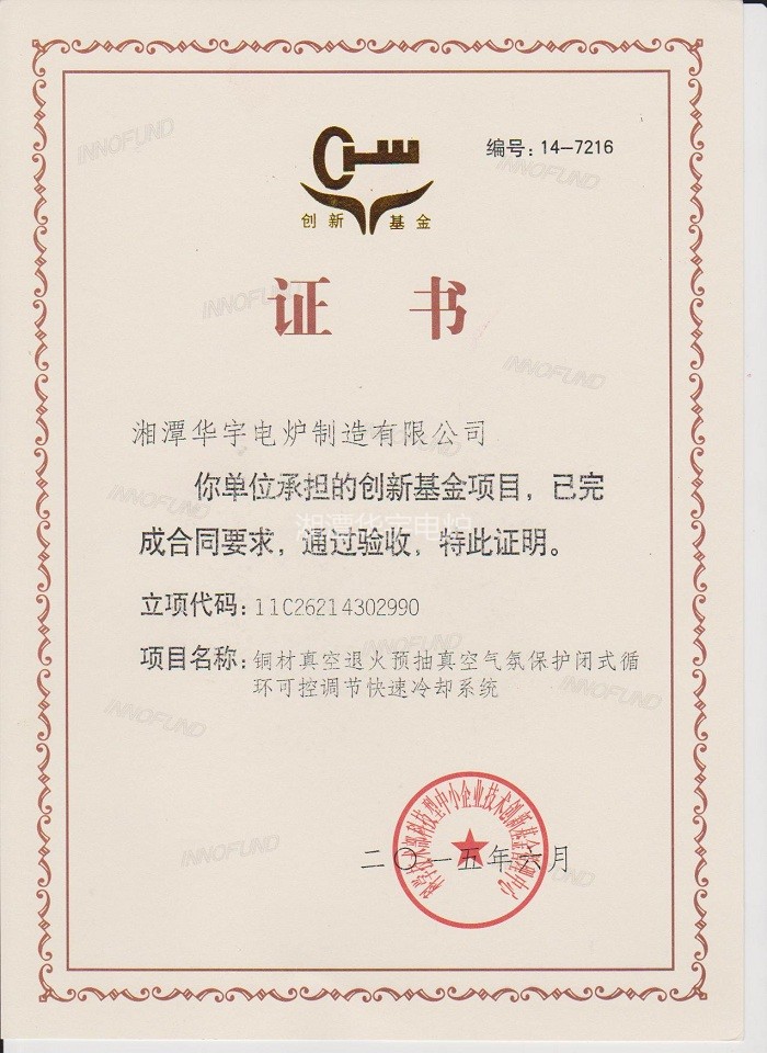 創(chuàng)新基金證書