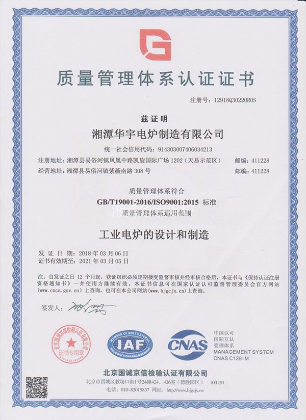 質(zhì)量管理體系認(rèn)證證書